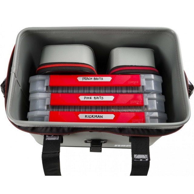 A Rapala Hydro Premium Tackle Bag foi desenvolvida para pescadores que exigem durabilidade, organização e total proteção do seu equipamento, mesmo nas condições mais exigentes. Fabricada com material de 1,5 mm de espessura e fundo rígido reforçado, esta bolsa é 100% impermeável, protegendo o conteúdo da humidade, sal e chuva. O interior conta com bandeja removível e amplo espaço para até 5 caixas Rapala 3560 Tackle Trays (tamanho 3700, vendidas em separado) — ideais para arrumação de amostras, anzóis e acessórios.
